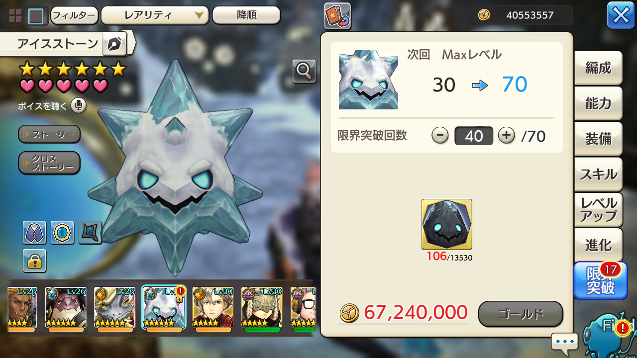 2026/04/13 05:32 公開 つぶやきショット「アイスストーンくん、星6へ」 雑日誌 スクリーンショット クアールのEXクエストに必要なアイスストーンくんを星6へ進化。後はレベル70まで限界突破させるんだけど、さあここからが大変。レベルの上がりにくさもそうだが、問題は溢れんばかりの超絶大量アニマの調達。聞いて驚け、その量アニマ13530個と約70000000ゴールド!!!!奇跡のスフィラこそいらないものの、これはヤバい・・・・。頑張ろう。 テイル リンクをコピーしました 前の旅日誌 旅日誌一覧 次の旅日誌 コメント