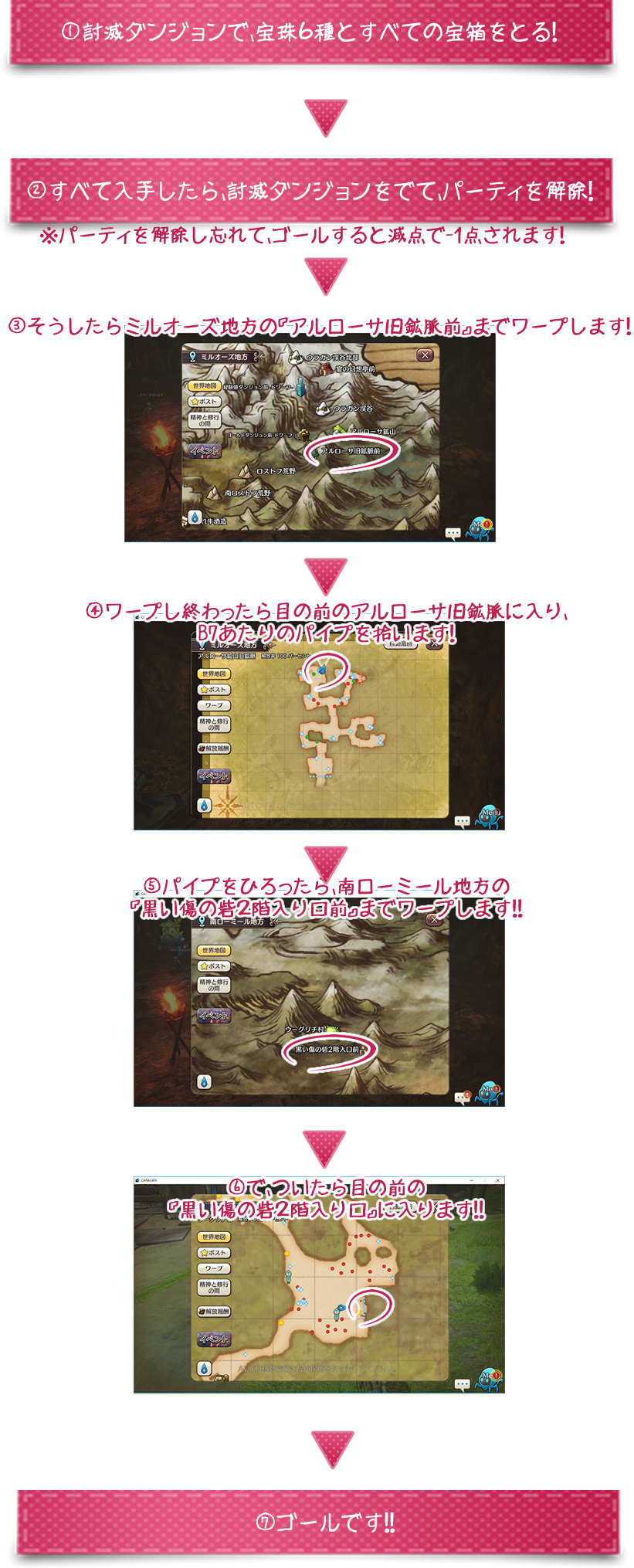 2018/10/20 11:30 公開 ギルド合同イベント「討滅ダンジョンタイムトライアル」というよりはトライアスロン!? 雑日誌 昨日、合同イベントでお世話になっているギルド、ユートピアさんと一緒にちょっと変わった趣向で討滅ダンジョン行ってきました!!タイムトライアルの内容は以下の図の通りです!!チーム分け方法提案したため、チーム分け係になり、レースよりもそっちに緊張してたのは内緒です。緊張が解けたせいか、討滅内でも、旧アルローサ旧鉱脈でも敵に当たってしまい、順位は振るいませんでした!!圧倒的大差で紅組の勝ちでした!私? 私はもちろん白組です!!・・・レース終了後はもちろん記念の撮影会です!! エリリカ リンクをコピーしました 前の旅日誌 旅日誌一覧 次の旅日誌 コメント 1 ハヅキ ID: bg7vdw3n9bh3 エリリカさん昨夜はお疲れ様でした‼️いや〜あのチーム分け方法はナイスアイデアでしたよ(๑˃̵ᴗ˂̵)さすエリ(≧∇≦)普段ぶつからない雑魚敵にぶつかる以外は順調に進んで良かったです✨本当に楽しかった(^^)例の小部屋での会議も好きでした♪また機会があったら皆んなでワイワイ遊びましょうね〜 2018/10/20 13:02 2 ます ID: xszi6buzfqwt お疲れ様でした(*゚▽゚)ノ企画から運営まで頼りっぱなしでした(´∀`)お陰でとても楽しかったです!一斉にスタンプが飛び交うのも新鮮で面白かった笑またご一緒しましょう!!! 2018/10/20 13:12 この発言は削除されました(2020/11/21 03:00) 3 4 エリリカ ID: b257jyip3d9v >> 1 何日もかけて会議したかいがありましたね!!みんな楽しんでくれたようでよかったです!!こんな企画を思いつくぬくぬくさんは、さすぬくです!!みんなで遊ぶのは楽しいですね!! 2018/10/20 18:16 5 エリリカ ID: b257jyip3d9v >> 2 スタンプの時が一番緊張しました!!でもチーム分けするにはいいかもしれないですね。その場で簡単にできます!!また一緒に遊んでください! 2018/10/20 18:17 6 エリリカ ID: b257jyip3d9v >> 3 うちのギルドはそんなに強くないので、上級です!! 2018/10/20 18:19 7 アオイ ID: yfpc33zxmd4a 昨日はお疲れ様でした(*´∇`*)チーム分け方法考えた人、天才やー!!…と思ってました。流石です☆私もぶつかりまくりでした。ごめんなさい(>_<) 2018/10/20 19:56 8 エリリカ ID: b257jyip3d9v >> 7 えへへっ!!普段そんなぶつからないのに、昨日はみんなぶつかってましたね!! 2018/10/20 21:59 9 イルマ ID: pcw2ftbxdhby エリリカさん 昨晩はどうもありがとう~楽しかったです~(*´▽`*)/でも、でも、最下位で足引っ張っちゃってごめんなさい~><ああいう場だと緊張しちゃって・・・討滅で操作ミスってmobカエルに引っかかっちゃうし・・・倉庫一杯で荷物整理に時間かかっちゃうし・・・ああもういやになっちゃう。(。・ω・。)でも、また誘ってくださいね~~~^^企画・運営どうもありがとうございましたぁ(人''▽`) 2018/10/20 22:39 10 エリリカ ID: b257jyip3d9v >> 9 一番最初にカエルにつかまったのは私だなんて言えない・・・倉庫整理・・・ 始まる前に言っておけばよかった・・・企画も運営もほとんどぬくぬくさんですよー!!私は少しお手伝いしただけです!! 2018/10/20 22:53 11 ぬくぬく ID: d6jx73y6drew エリリカさん、先日の合同イベント(〃^∇^)oお疲れさま~♪事前のミーティングもありがとね 日誌にミーティングの内容まとめてくれて大変助かりました あの完璧な図 素晴らしい!wまた、(´。•◡•。)ノよろしくね♪ 2018/10/21 02:22 12 エリリカ ID: b257jyip3d9v >> 11 おつかれさまでした!いつも企画を考えてくれて、ありがとうございます!!次の企画もよろしくお願いします! 2018/10/21 11:44