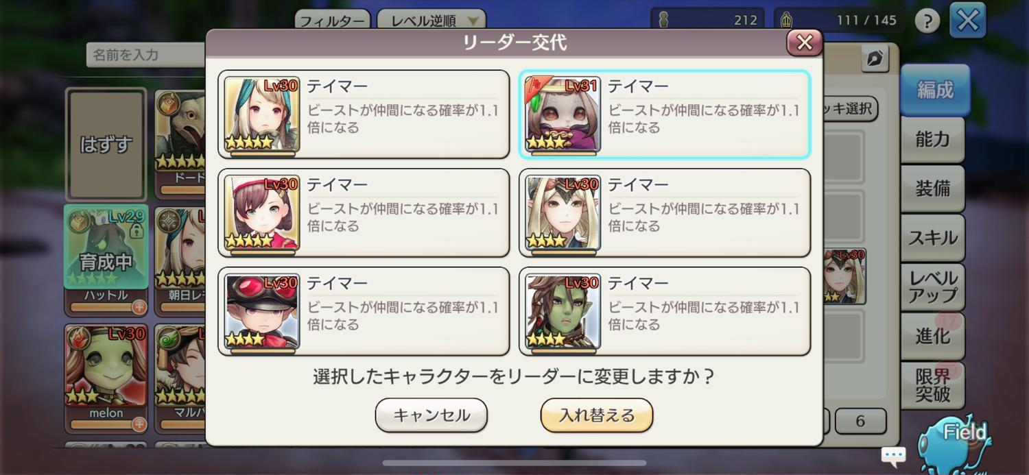 あとたぶん何の効果もないけれど、今回は執念を込めて全員テイマーで揃えました?