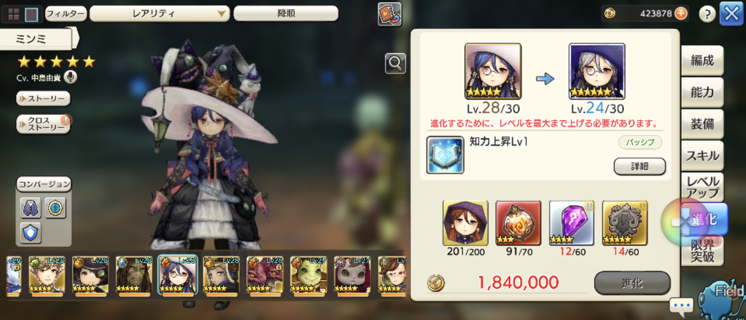 彼を進化させた後にミンミかなー。月兎は★6に