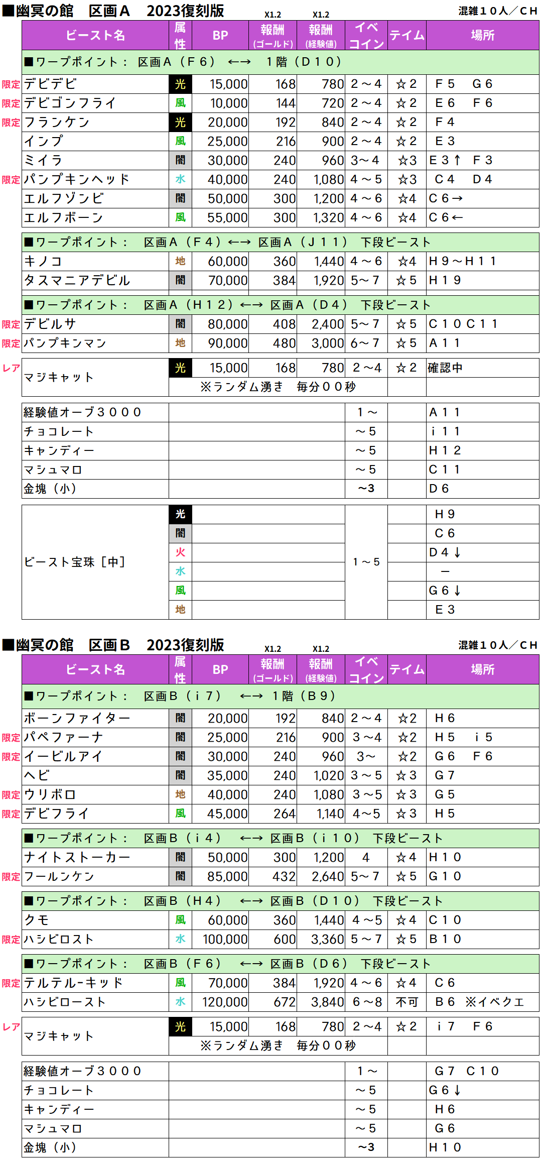 UPDATE 2023.10.19 06:30 区画Cゴースト→カボチャゴースト訂正