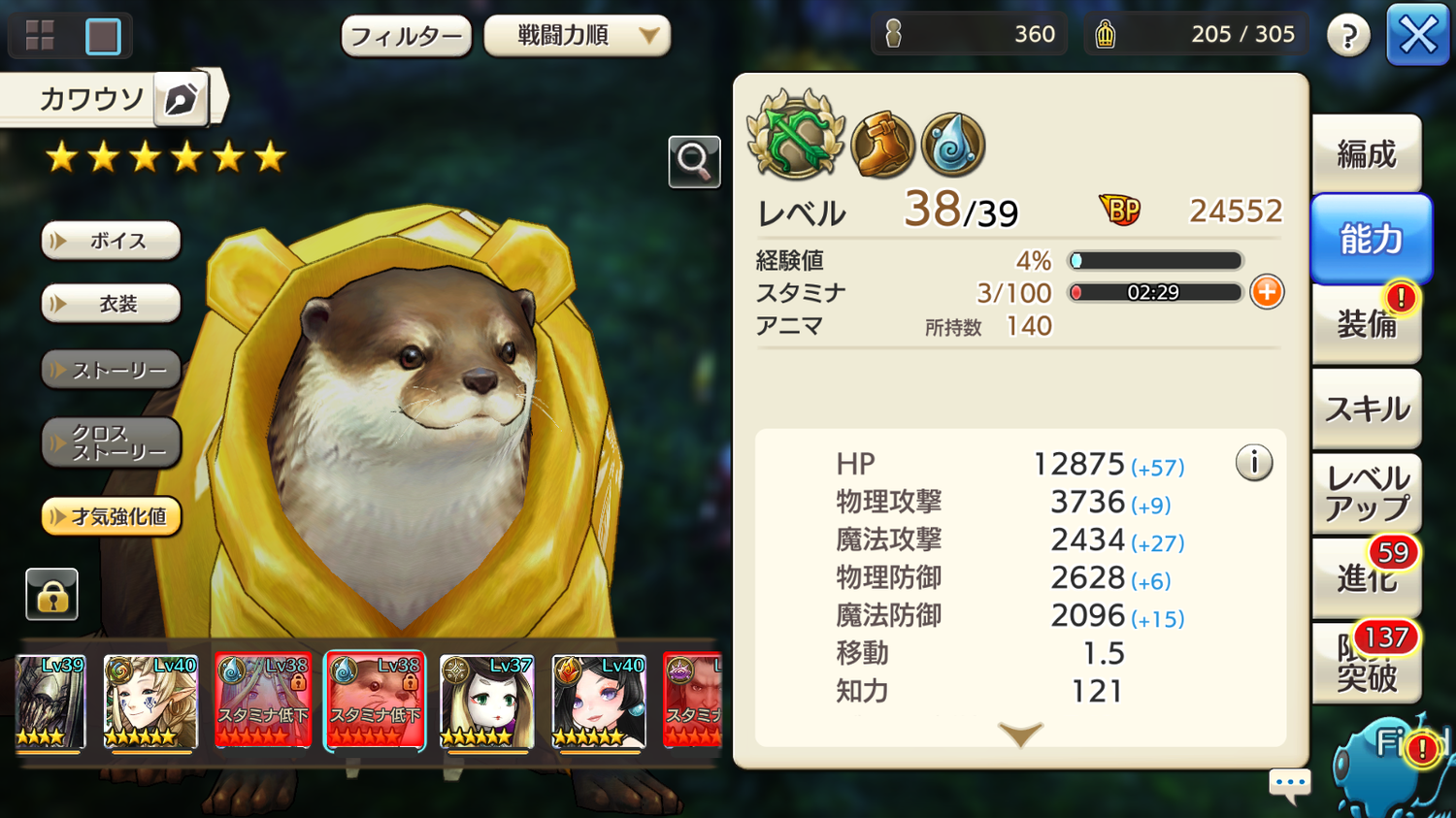と言うことでカワウソ適当に強化しました!(BPアルマン超えてるやん・・)