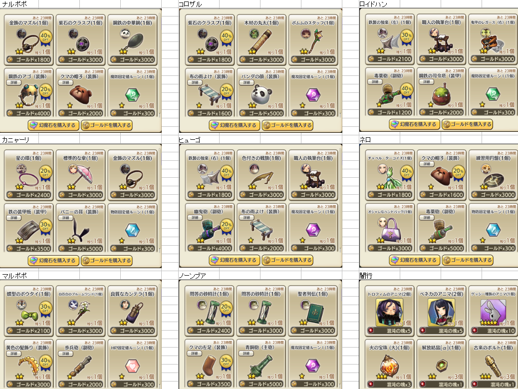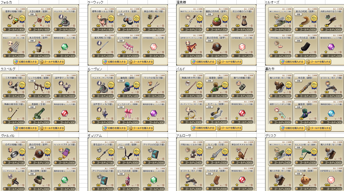 8/26 装備商人一覧