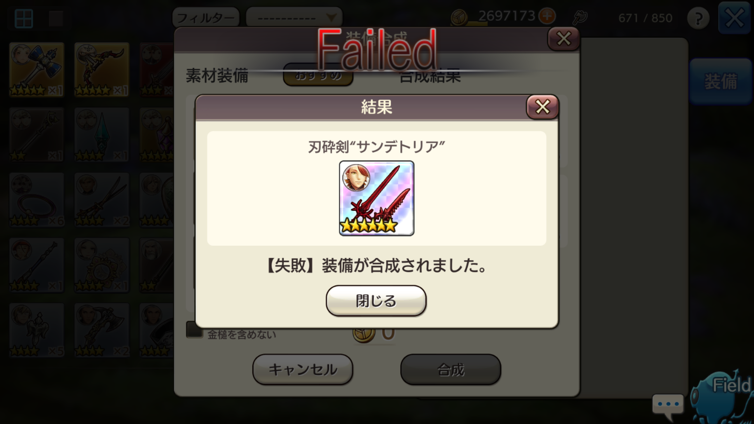 ☆5装備がいかに貴重だったか合成失敗した後いつも思い知らされます…(つД`)ノ