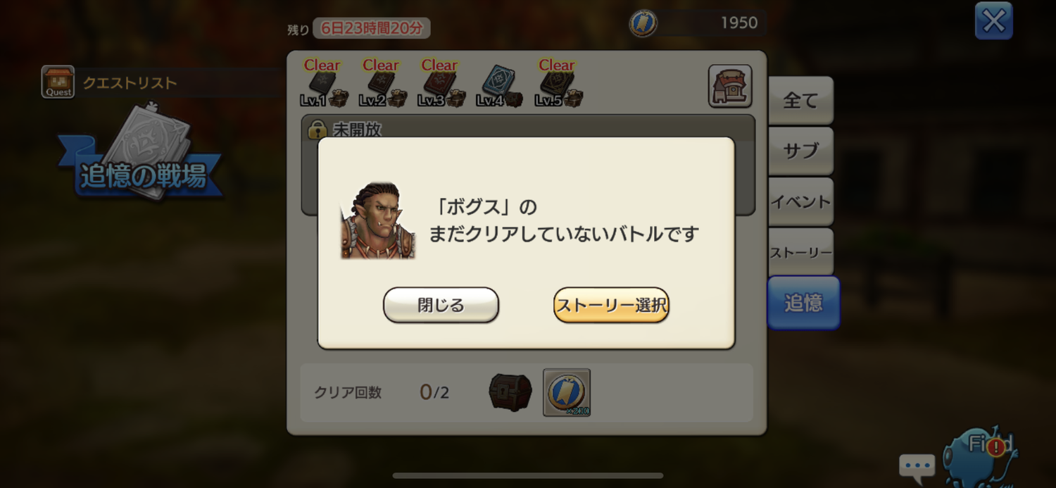 …クリアしてないストーリーバトルがあった。