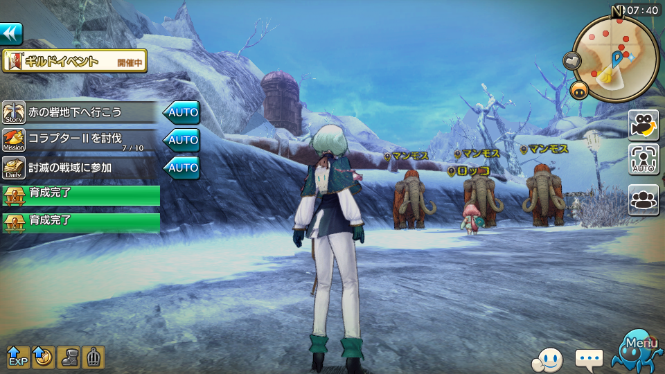 シヴァが仲間になって(この間に雪だるまが20匹ほど仲間になっていましたが、1体を残し逃がしました)ロッコのマンモスへ突撃してきました('ω')ノ