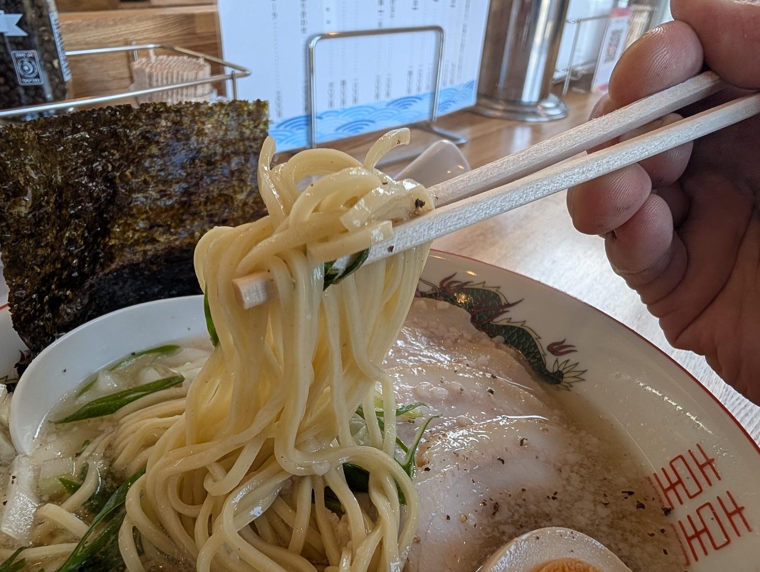 平打ちの麺はシコシコ感はあまり感じられませんがよくスープと合った感じです