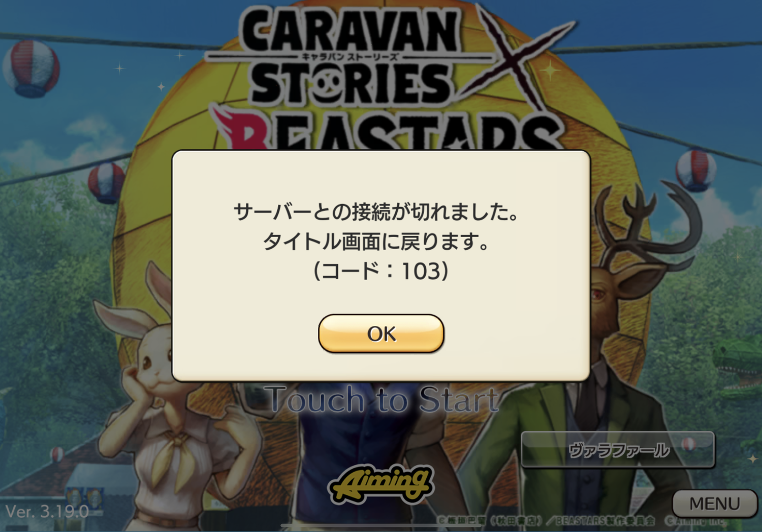 以後、多重ログインでログインを蹴られ、時間を置いても103エラーで落とされる状態が続いています。
