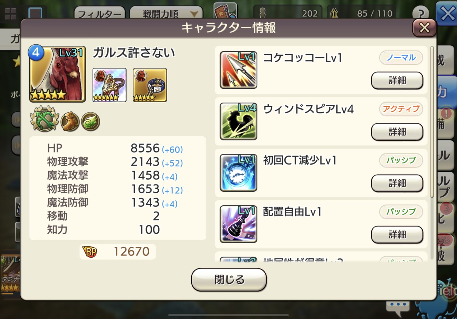 1600くらいでもソロがたまーに出てくるのですが、ネルルの駒は後ろに押しのけてくれるのでソロを寄せ付けません。動かない駒も4回くらいまで攻撃に耐えてくれるのでおじゃま役に最適です。