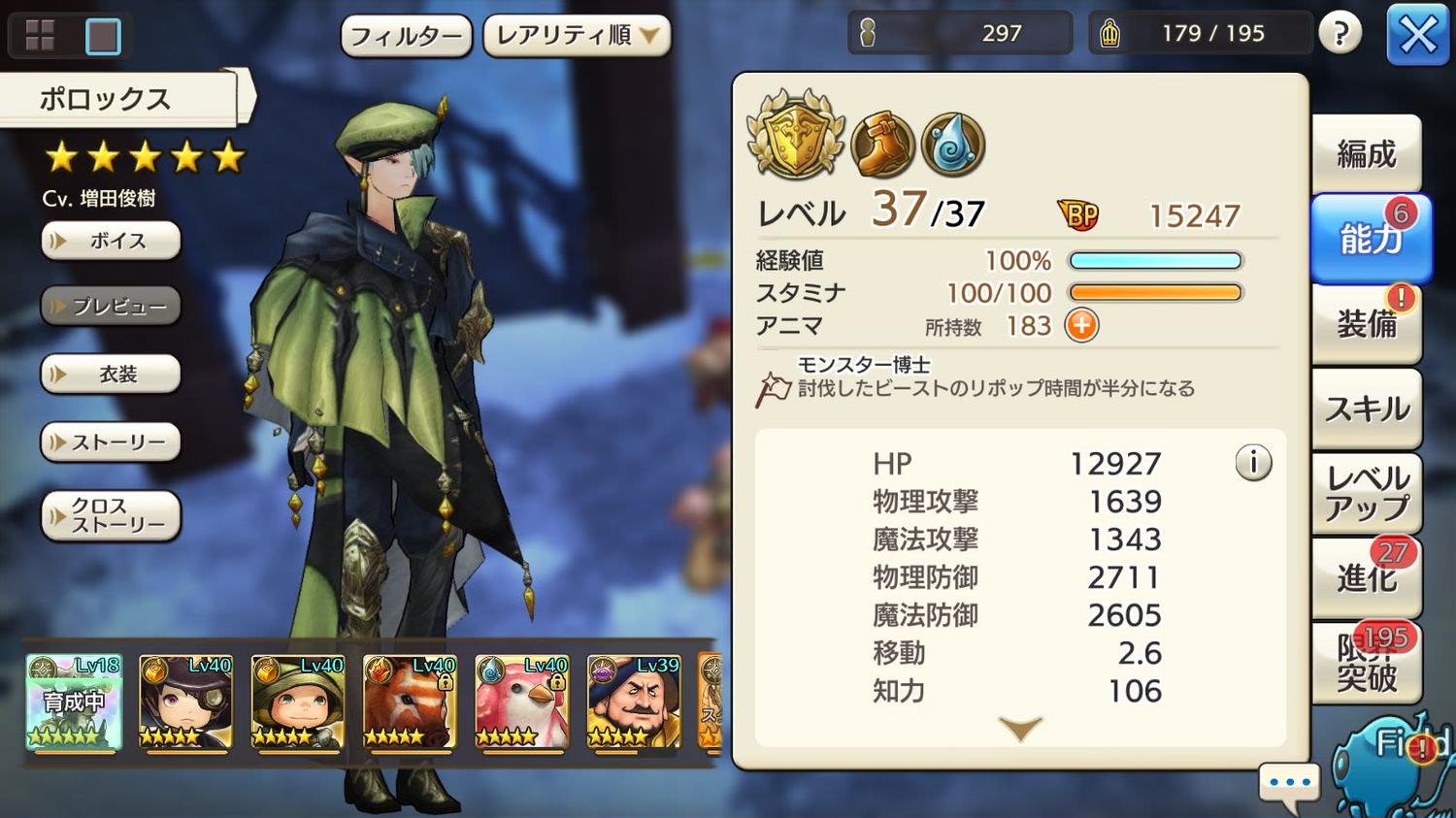 ポロックスは両手☆6でダメージ減少85%を常に維持出来るので、今後のストーリーで活躍出来る事間違いなしなのが良いですね!