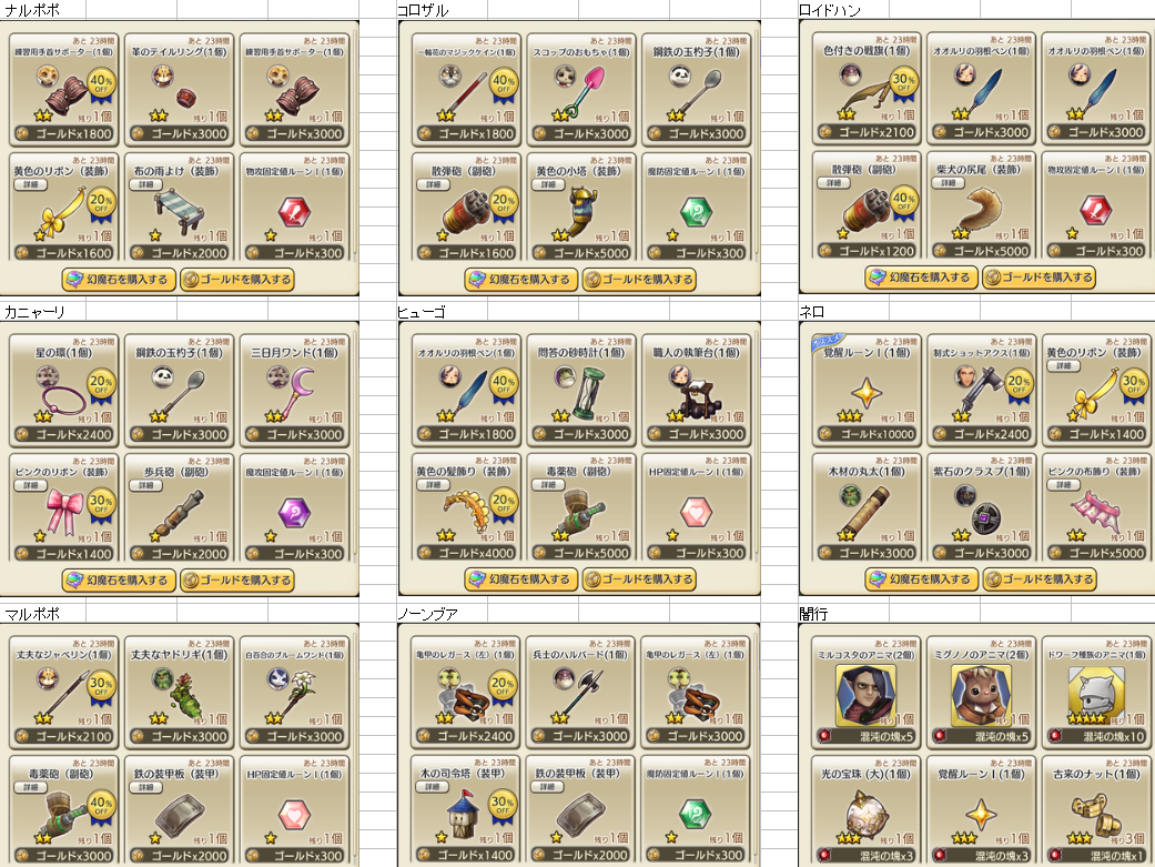 4/23 装備商人一覧