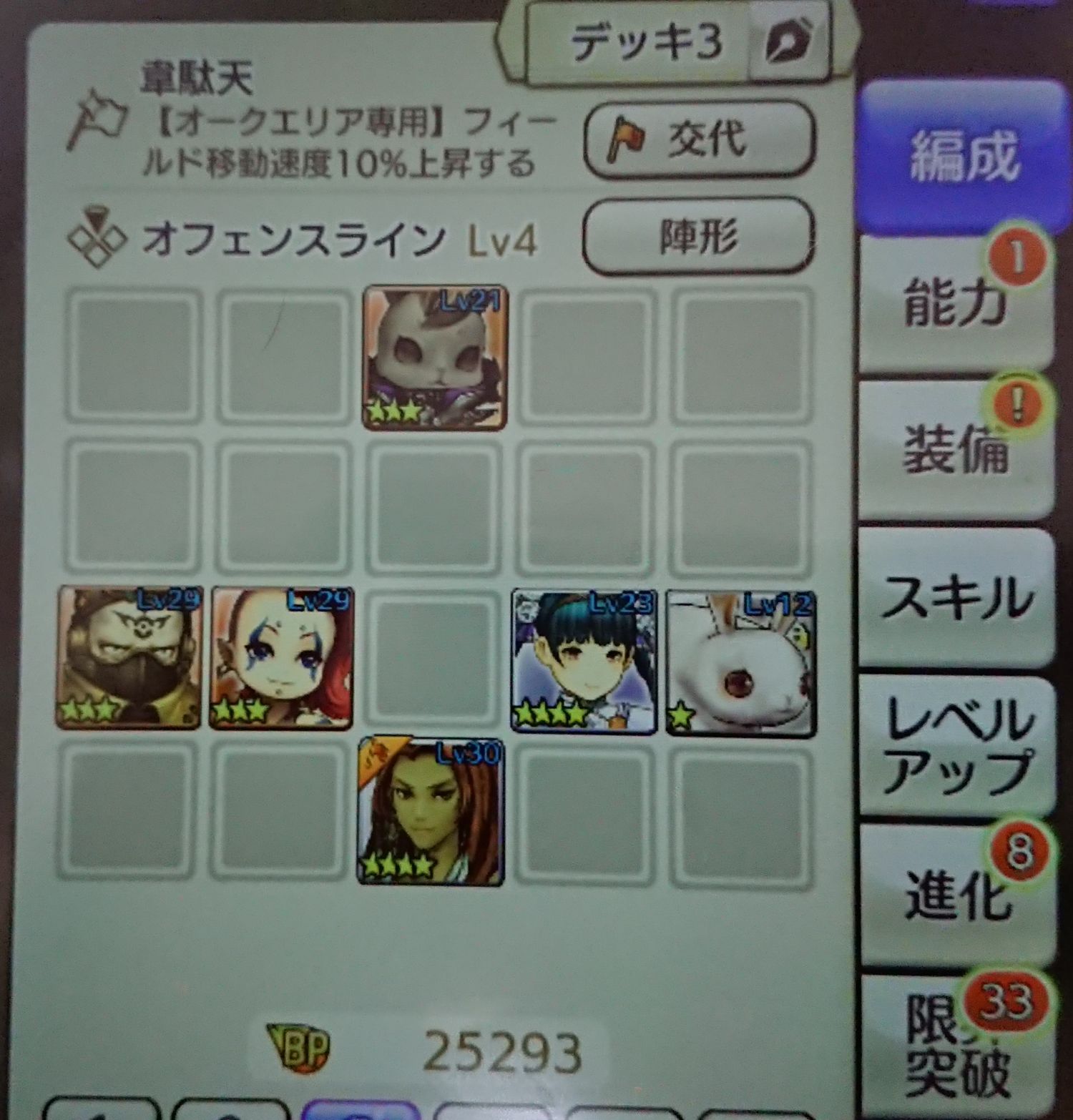 まぁ、BP25000台なので火力はお察しですが、一応時間内にはクリアできるはず…。