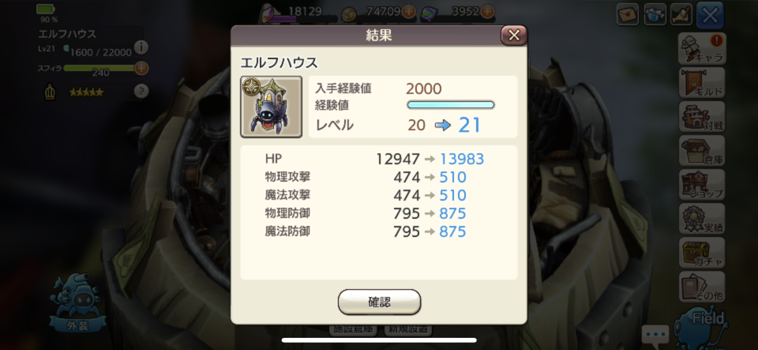 元々、ビーストテイム意欲が低いので急いでいた訳ではないんですが、クリスタル溜まった→使わないと勿体ない!→施設強化