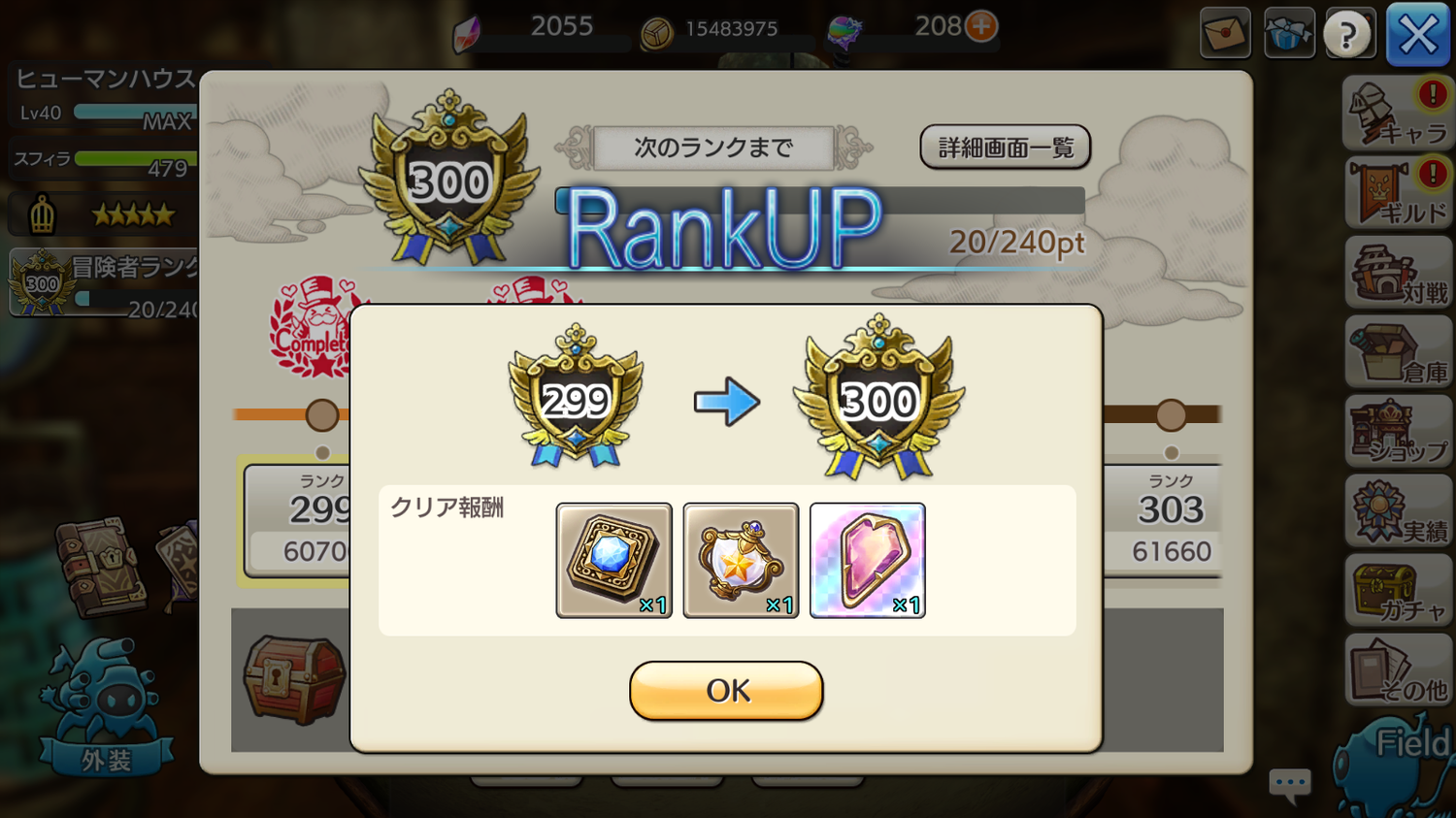 輝宝珠ドロップしないけど冒険者ランク300到達