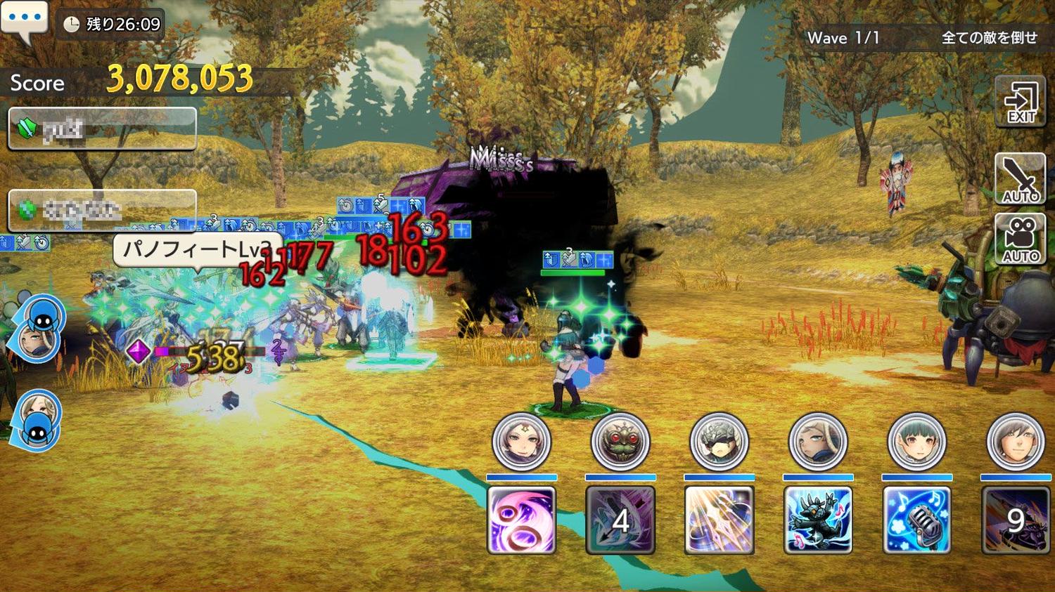このとき、シールドは何分もずっと出っ放しで、 そっちに攻撃しているキャラは最初から最後まで全段/全弾がMiss!!のオンパレードでした。