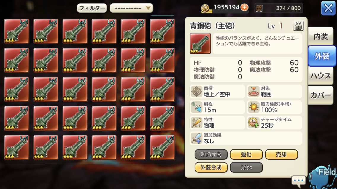 2020/10/10 14:20 公開 ☆3青銅砲(^^)まとめて合成 雑日誌 ☆3青銅砲が69個、他の☆3メイン主砲全部。☆4青銅砲がいくつできるか…(^^)台風で暇なんで合成してみた。確率15%(^^)結果☆4青銅砲4個できたw Akira リンクをコピーしました 前の旅日誌 旅日誌一覧 次の旅日誌 コメント
