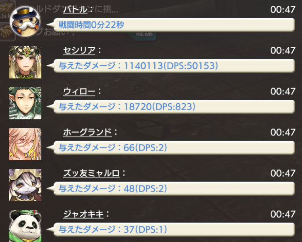 ウイローが一番出てそうではあるけど、他の雑魚にダメージが入って測れないんよね。