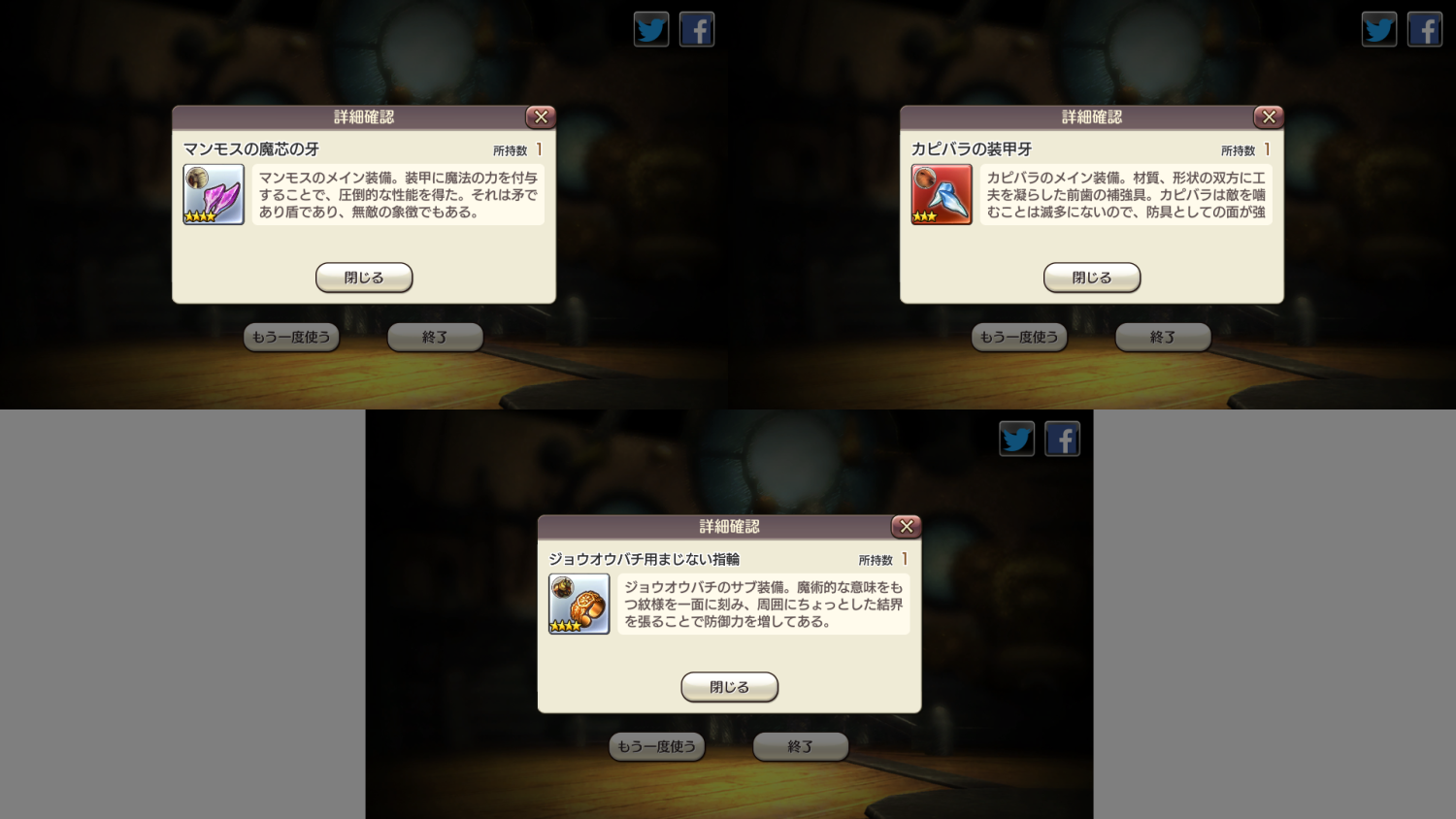 欠片は8個なのでまだ☆6合成はチャレンジ出来ません。