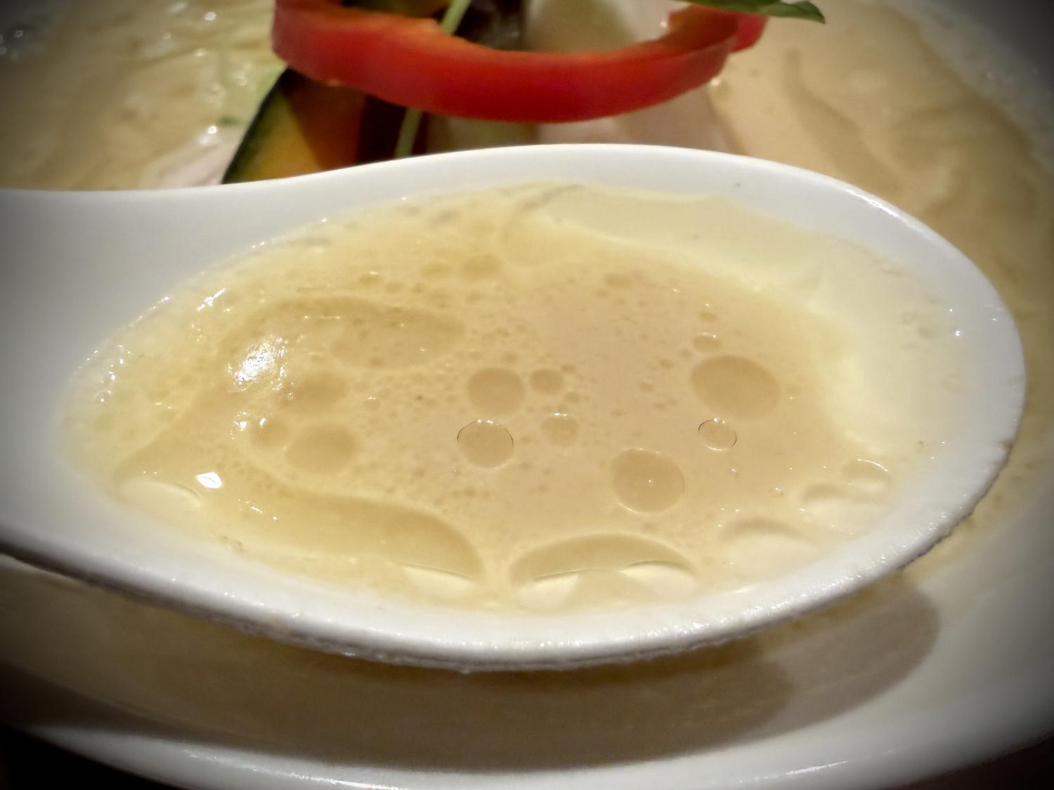 トリュフの強い香りが鼻腔を刺激してきます。その後、濃厚で鶏の旨みが舌にまとわりついてきます。
