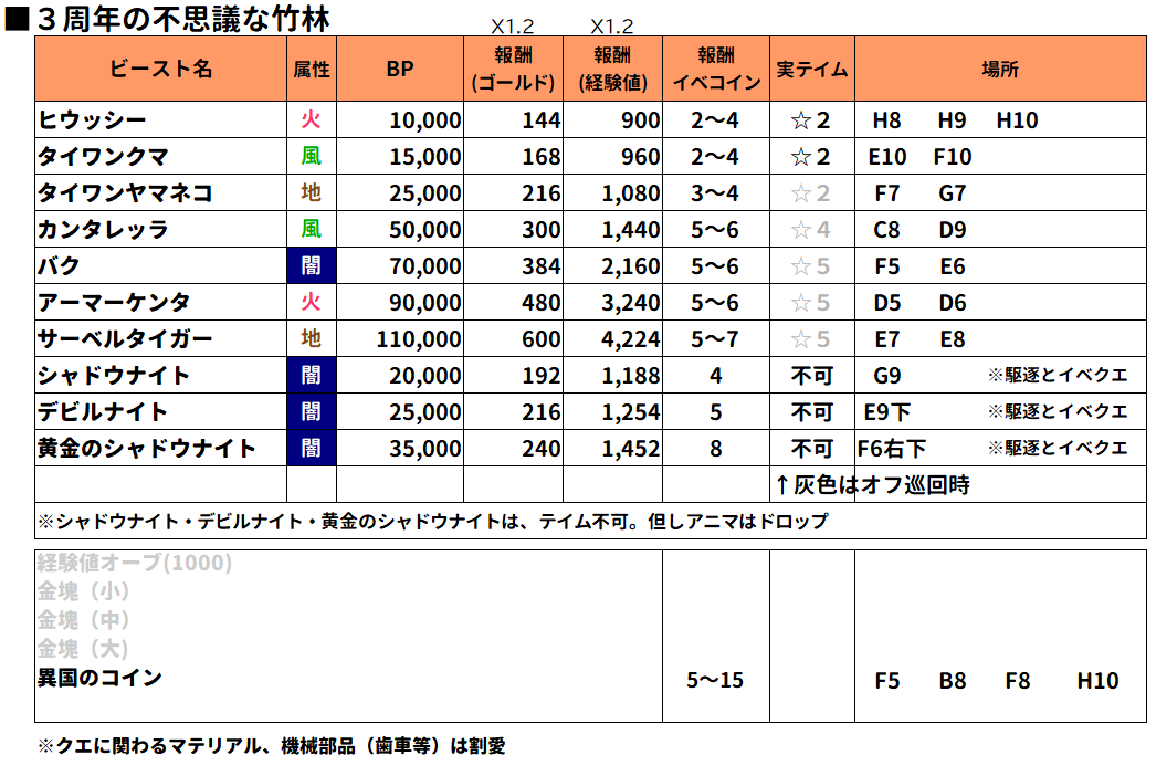 ボスビーストが出現し、幻魔石・経験値オーブ等の報酬有り(MAX50回/各種ごと)