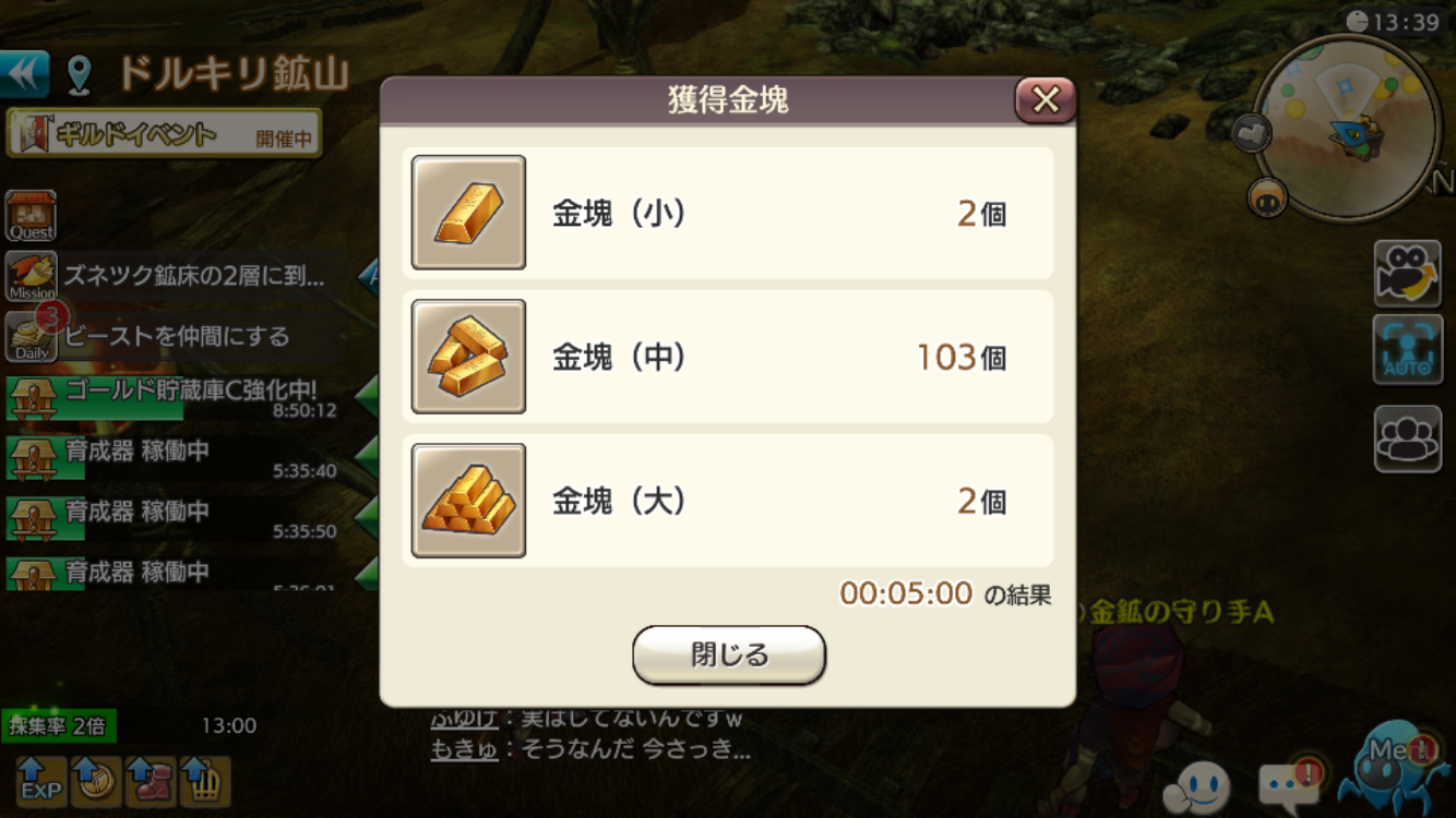 バフ:採集2倍&足早(石は足早スキル発動分は所持)