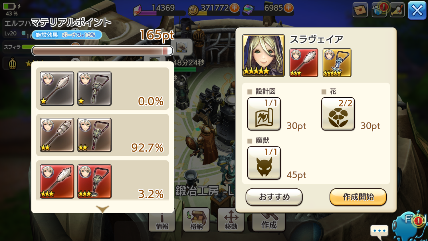 マテリアルポイント165もあるならもっとレアリティ高い装備作れや!!!
