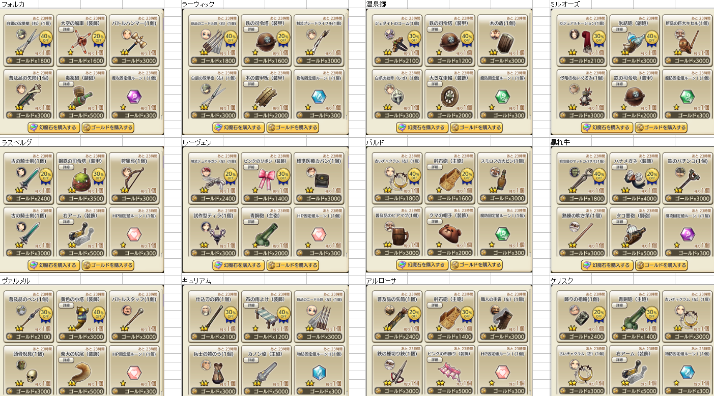 12/06 装備商人一覧