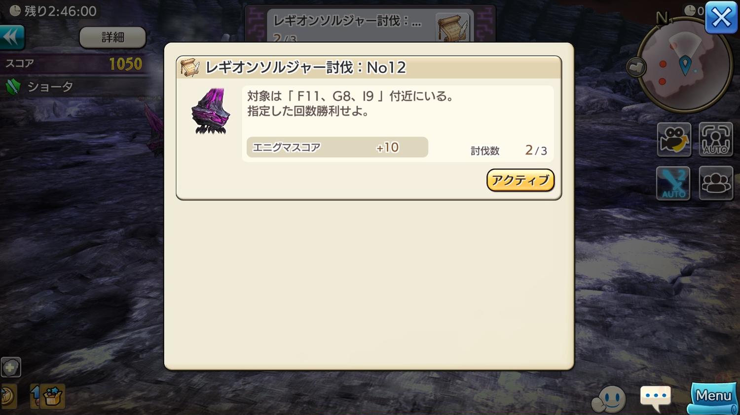 エニグマⅠであとはレギオンソルジャー討伐No.12と