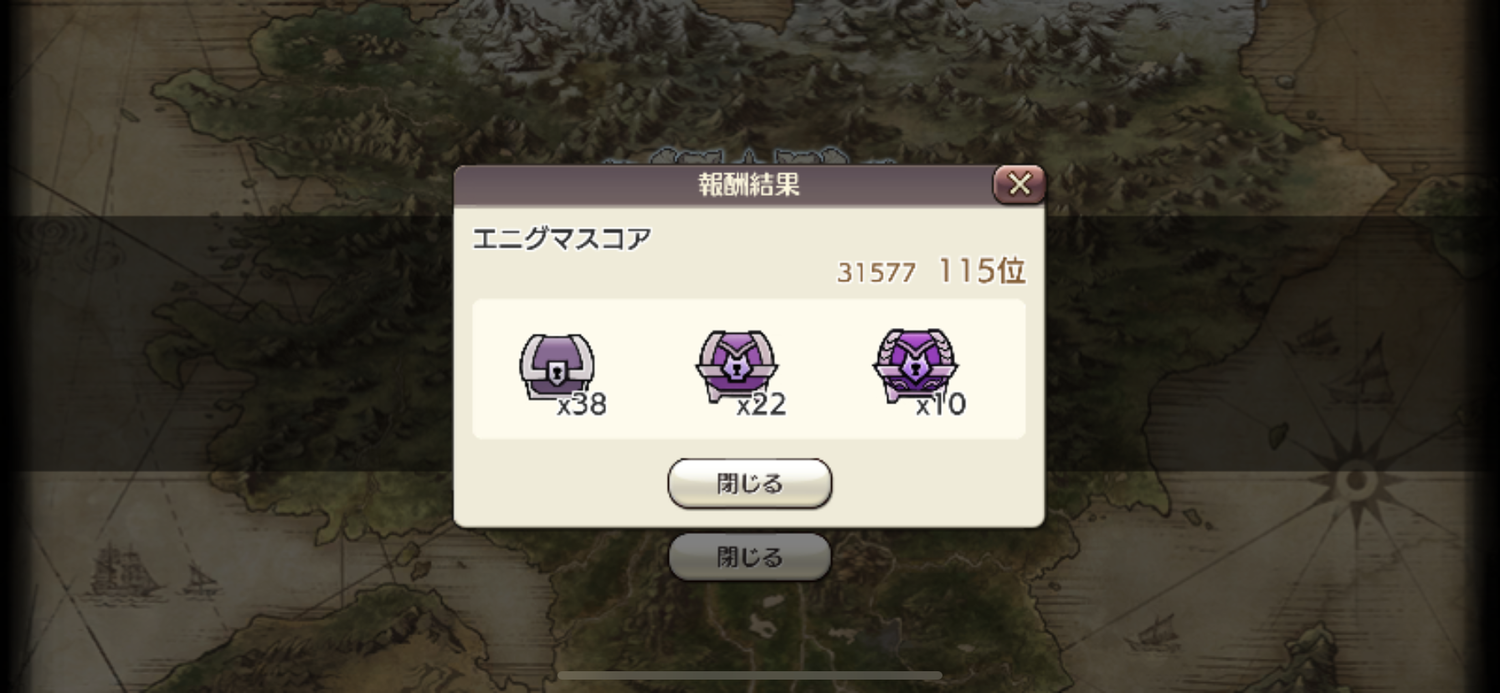ギルドの皆様(と言っても2人だけどw)エニグマお疲れ様でした!途中でわたしが瀕死になり、残りの厄介な中ボス〜イモムシを全てお任せしちゃってスミマセン(>人<;)お互い忙しく、今回はエニグマ内で出会う事は無かったけど、ホント頼りにしてます、ありがとう♪おかげで今回はオール100%だね!