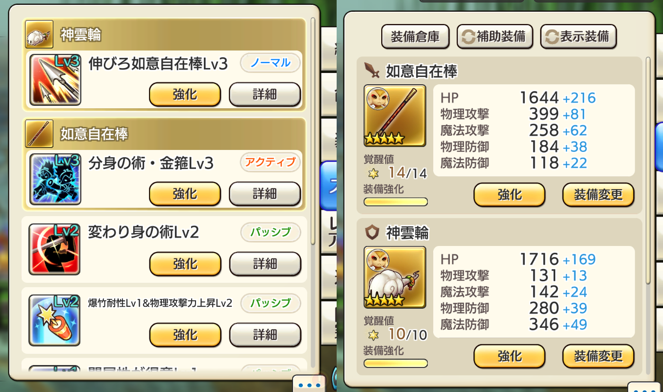 装備 :両手☆5装備(補助も1つずつ☆5装備と☆4装備)