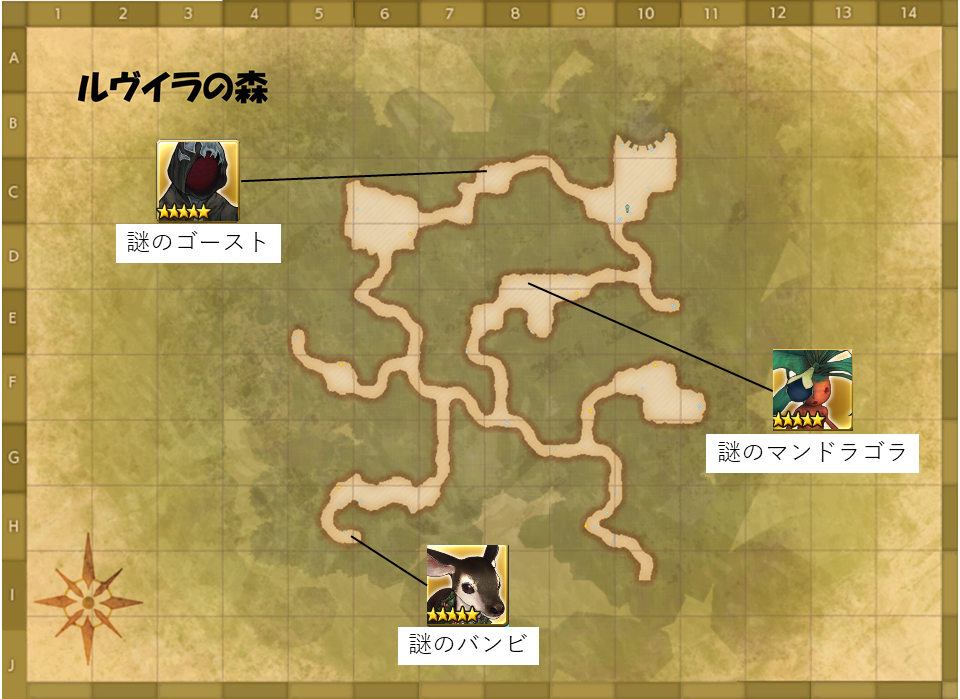 2018/05/31 00:37 公開 ビーストマップ【ルヴイラの森】 攻略 初期エリアまとめるより上位エリアの方が使うんじゃね?とやってから後悔しはじめた昼(3:00~18:00)☆1テントウムシ☆1マンドラゴラ☆1イヌ☆1ラットル☆2テントウムシ☆2マンドラゴラ夜(18:00~3:00)☆1コウモリ☆1スピリット☆1ゴースト☆1イヌ☆2ゴースト☆2スピリット Luo リンクをコピーしました 前の旅日誌 旅日誌一覧 次の旅日誌 コメント 1 ありゅฅ•ω•ฅ ID: 6288g42w8v3g ちょこちょこビーストマップ利用させていただいております。ありがとうございます♪一つルヴイラの森に追加をお願いしたいのですがよろしいでしょうか。3:00~4:00の間、H6に☆5バンビがPOPします。同じ座標に謎のバンビもおりますのでお時間があるときにでも追加をお願いいたします。<(_ _*)>ペコ 2018/06/30 15:24 2 Luo ID: eujpjii6d472 >> 1 情報ありです! また確認し次第、更新しますね(≧∀≦) 2018/06/30 21:12