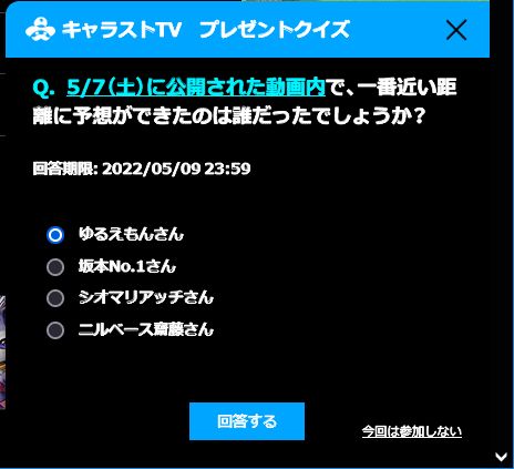 2022/05/07 22:00 公開 キャラストアンケートクイズの答え 雑日誌 ギルドメンバー募集 スクリーンショット ゆるえもんさんhttps://youtu.be/L04WaqenHeY?t=1064 ルル リンクをコピーしました 前の旅日誌 旅日誌一覧 次の旅日誌 コメント
