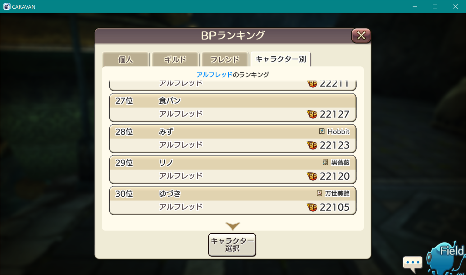 アルフレッドさんのBPがランキングに載れるようになってきました。もう少しで補助装備全部開けられるので☆5以上の装備を増やしたい所……レベルもまだ凸しきれていないのでアニマ集めしなければ。