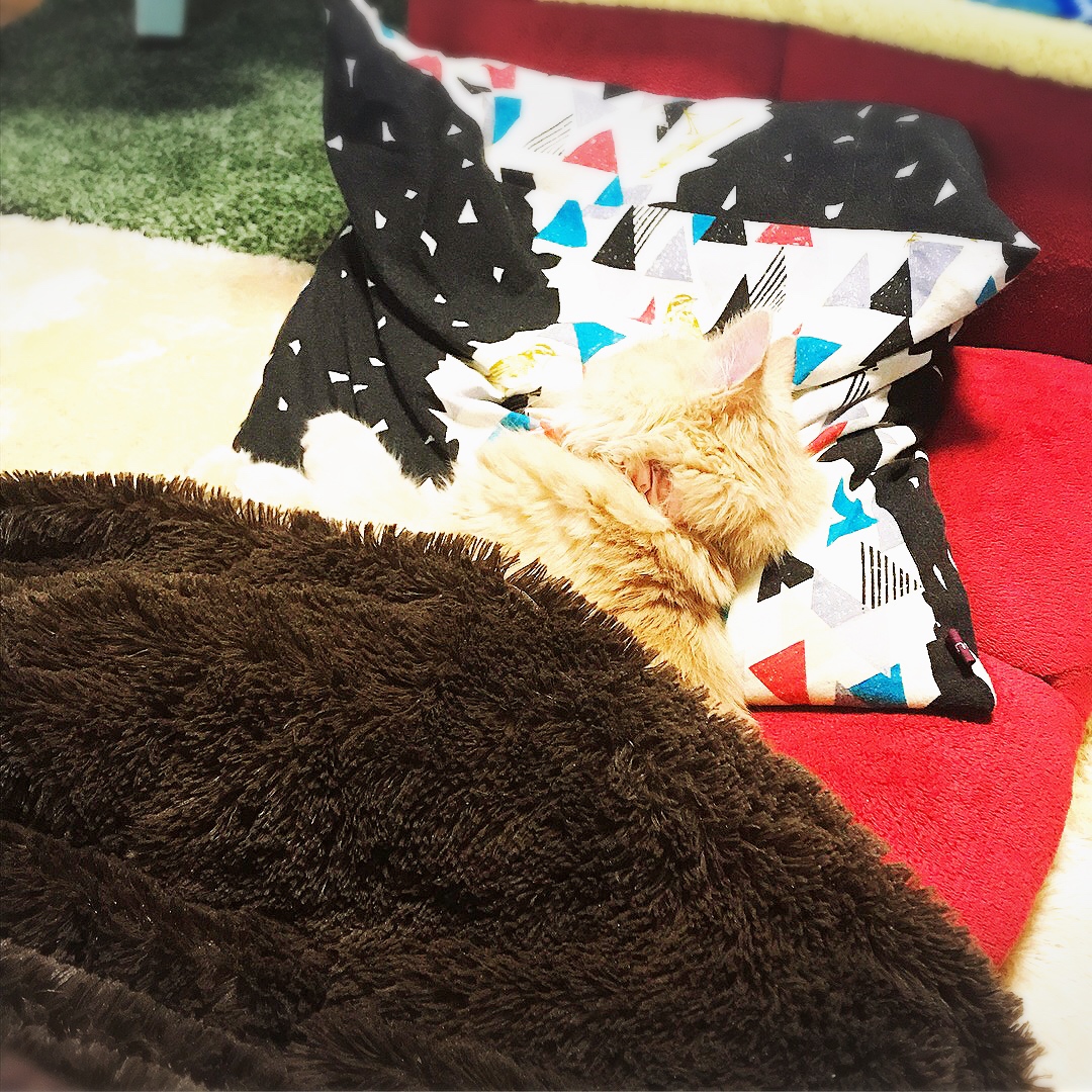 我が家のお猫様も激おこからのコタツでふて寝しています。まるで人間のようなくつろぎっぷり。きっと自分のことを猫だと気付いていないでしょう。
