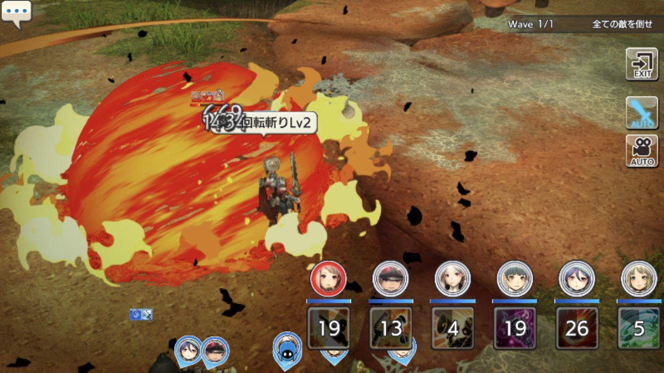 戦闘開始後、タンクの挑発でキノコをやや上の方に持っていき、遠距離火力で削りました。