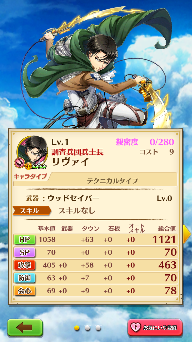 2018/03/02 12:44 公開 キターーо(≧▽≦)оーー! 雑日誌 キャラストとは関係ないんだけど今白猫プロジェクトで進撃の巨人コラボやっててコラボガチャ引いたらなんとリヴァイがようやく出ましたー(*^ω^*)めっちゃ嬉しい(。>∀<。)♥♥リヴァイ大好きなのでこれからメインで使おうかな(*^ω^*) ダンテ リンクをコピーしました 前の旅日誌 旅日誌一覧 次の旅日誌 コメント この発言は削除されました(2019/01/03 03:00) 1
