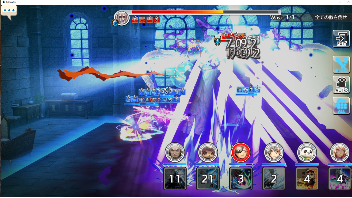 じぃちゃんの移動する攻撃(突進)とビーム攻撃(余は死にたくない)がダンチョ以外に当たらない位置にいることを確認してオート2。