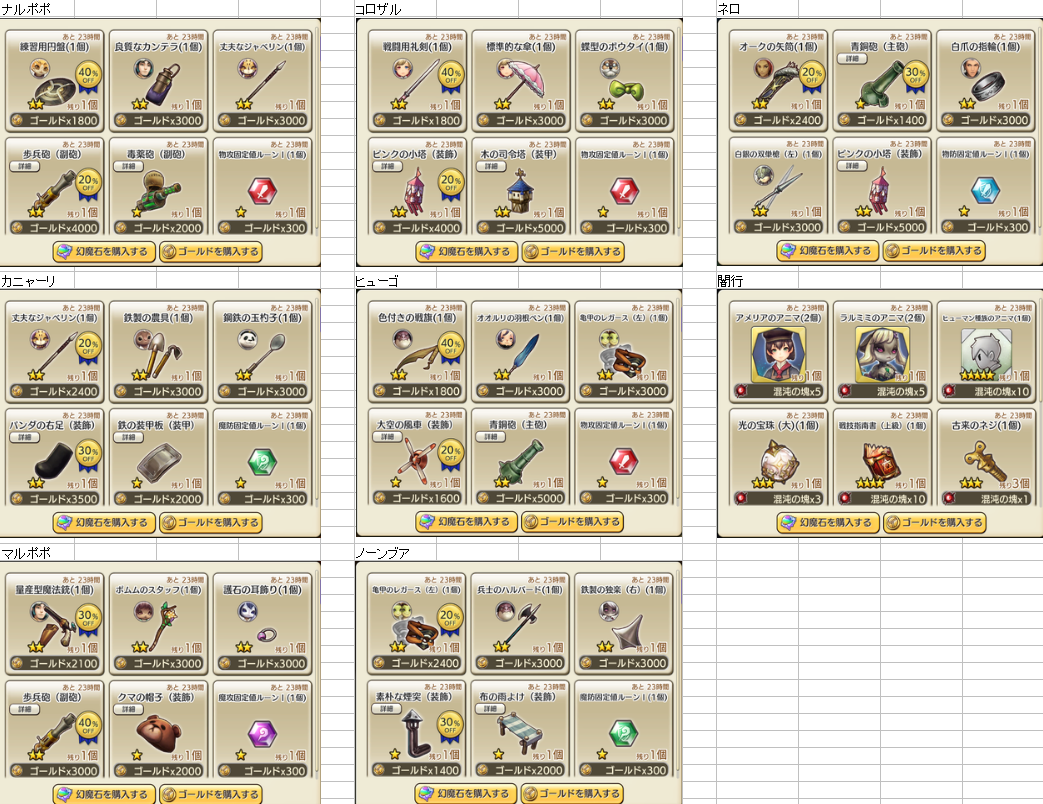3/20 装備商人一覧