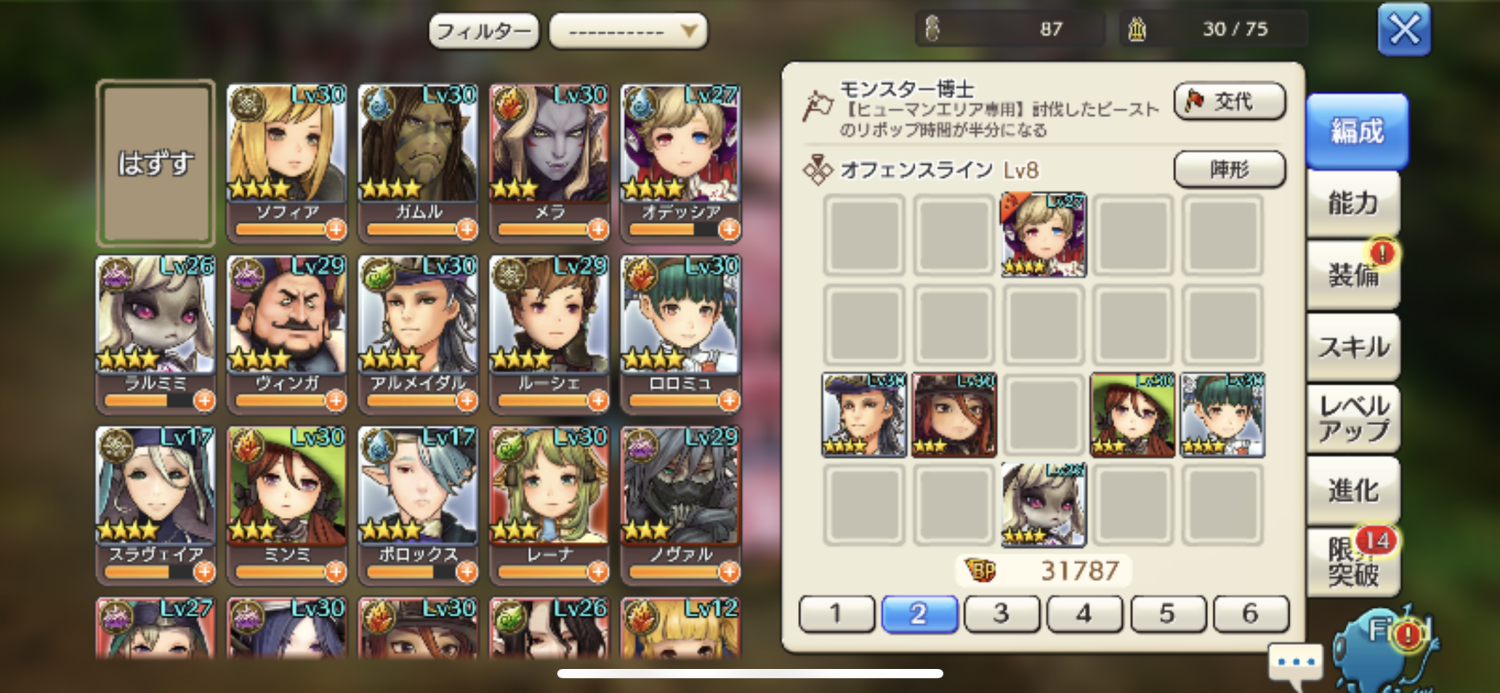 陣形はミスりましたけど、メンバーはこれ(画像①)で楽勝でした♪