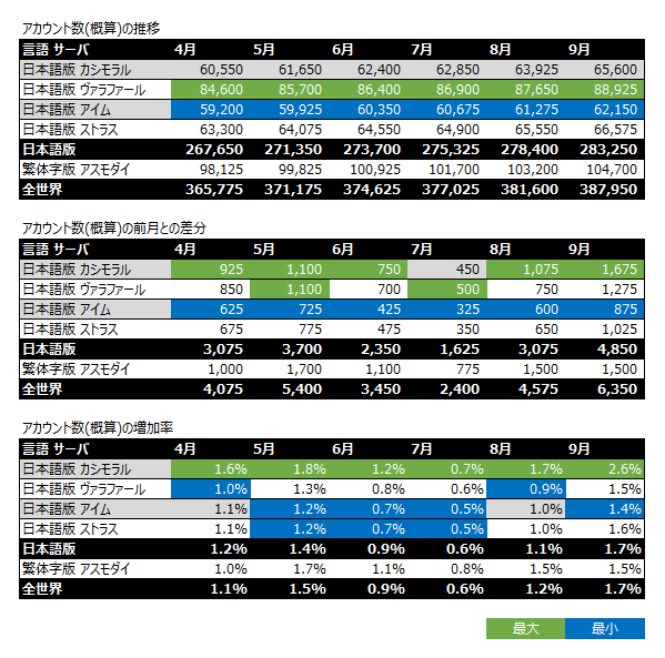 ・9月現在、最もアカウントが多いのはヴァラファールです。