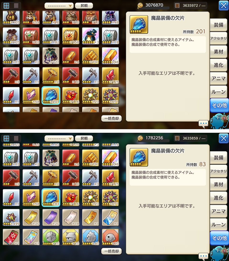 2週間ぐらい前ですが、魔晶装備の欠片が200個貯まったので、