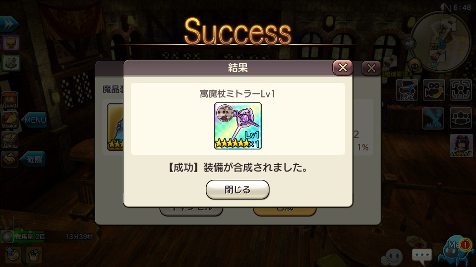 初めての魔晶装備欠片合成に挑戦しました!!(`・ω・´)ゞ