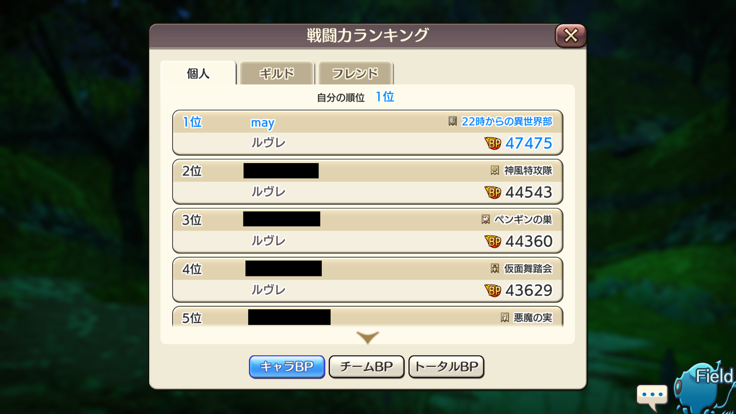 個人BP1位、おめでとうございます(*´ω`*)もう★6武器が補助に入ってることに驚きです∑(゚Д゚)