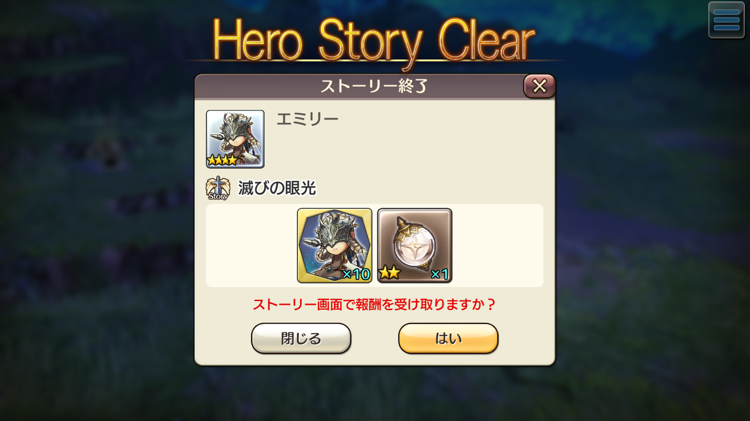 続いて、エミリーのクエストを進め、順調に「滅びの眼光」までクリア。
