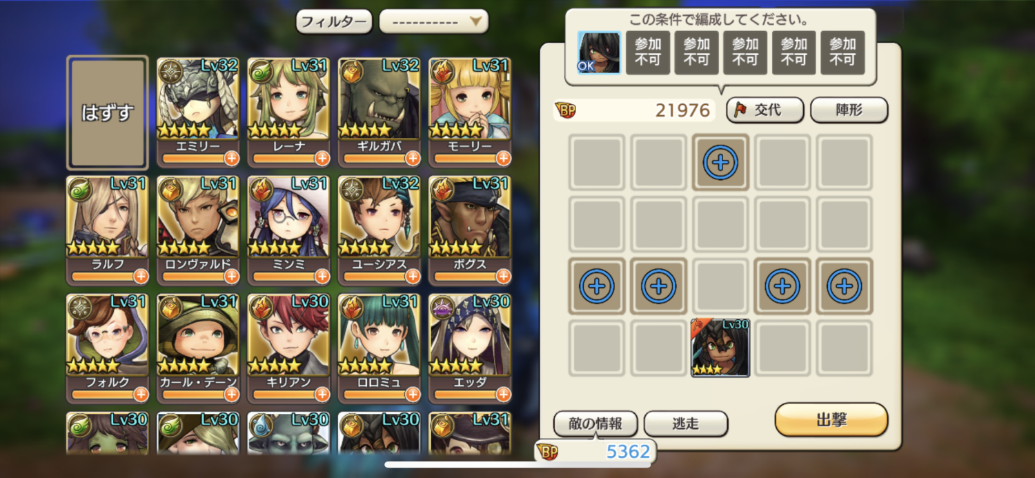 ・ガオの位置 : 最後尾(ダメージ増加)
