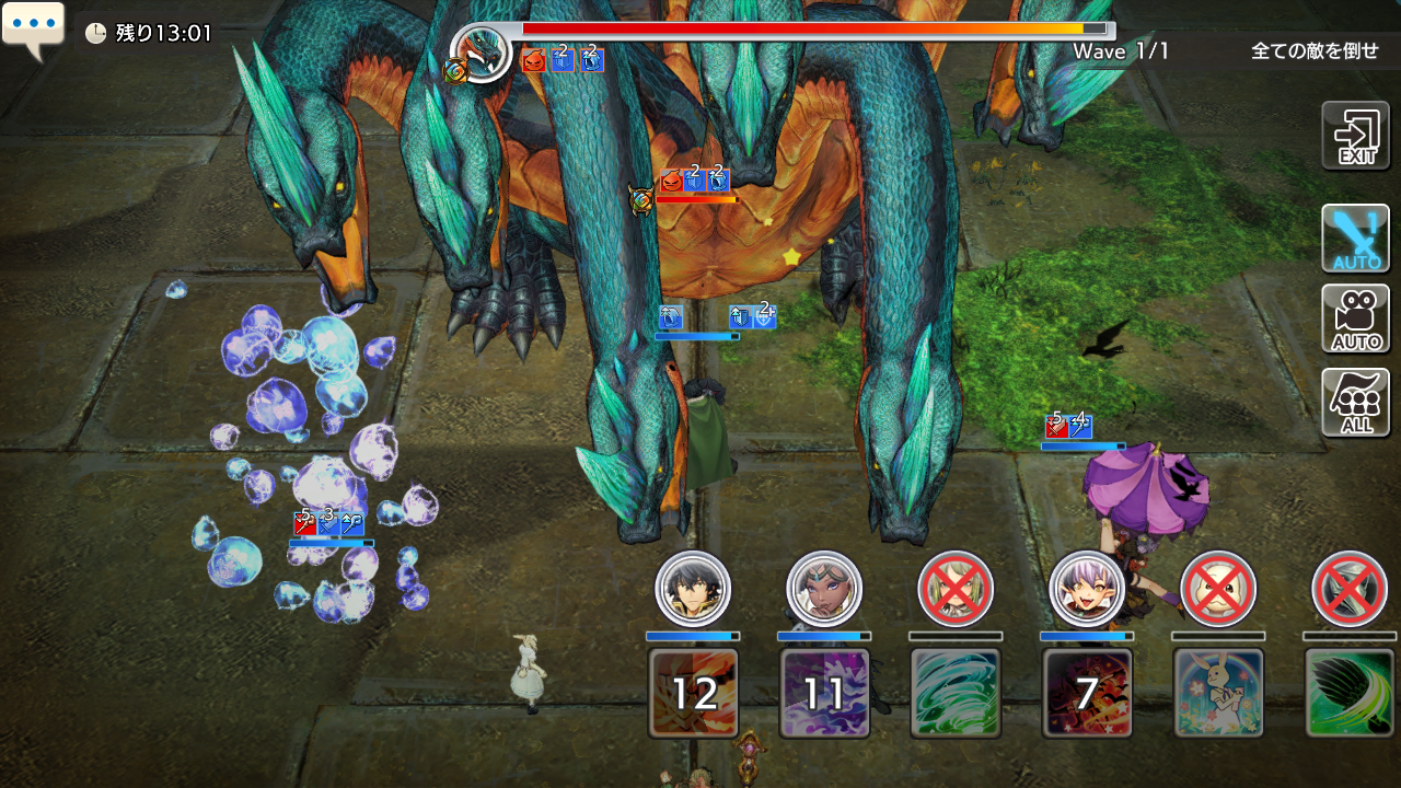 このボスは「ヒドラ」って言うんですけど、強いですよね。体力が高い上にこちらに攻撃力デバフをかけてきたり、自身に永続する防御バフをかけたりするので一頭倒すのもかなり時間がかかります・・・。