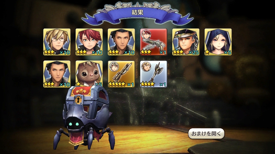 2018/10/03 23:31 公開 パルヤン☆5と白爪ガチャ 雑日誌 スクリーンショット いつもの☆5記念でパルヤンを☆5にしました。☆5もそろそろ珍しくなくなってきたかな?あと白爪騎士団がでやすいガチャを引いてみました。キリアンのアニマは少なめですがレオミュールの☆5が出ました。レオミュールというとレオのクエストの3番目で恐怖でヒューマンアバターが遠くに行ってキャラバンと後衛がやられるというパターンで負けています。恐怖耐性でタンクと言うとボグスを育てるのがいいのかな? 氷十郎 リンクをコピーしました 前の旅日誌 旅日誌一覧 次の旅日誌 コメント