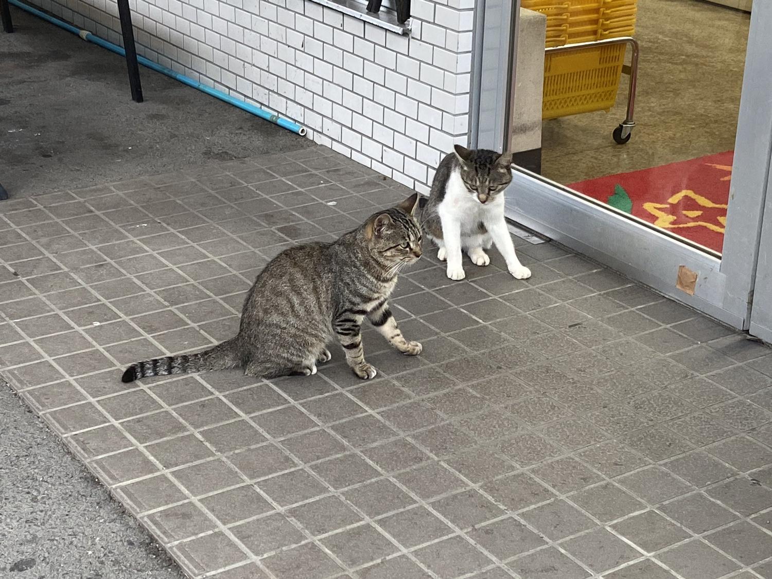 2匹は兄弟で生まれたときにコンビニで捨てられていて店長がそのまま育てています