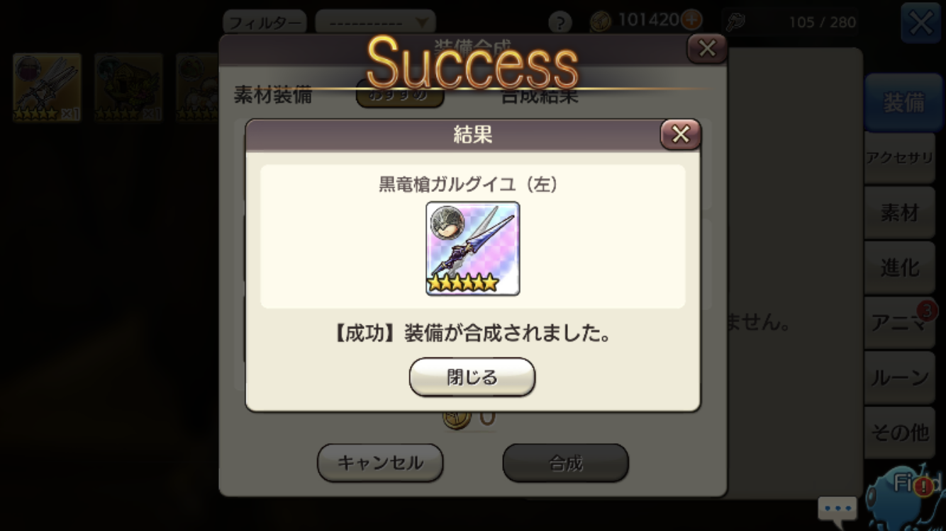 解放するだけのアニマは貯まりましたが、すぐ解放しても☆5進化しないとどうにもならないため、しばらくアニマだけ貯めることにしました。