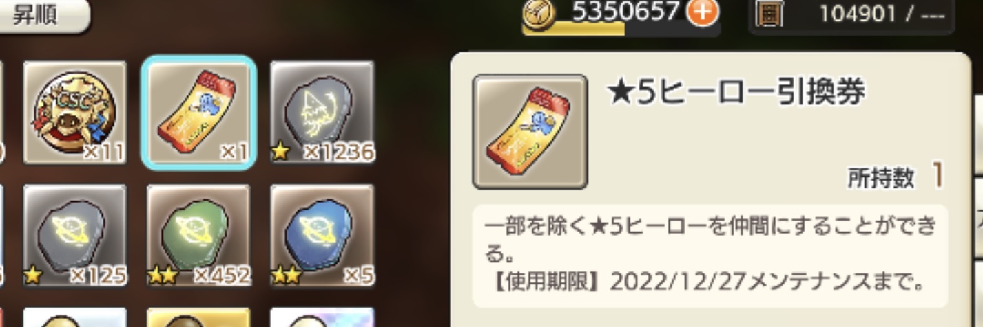 2022/12/05 23:50 公開 星5ヒーロー交換チケット5周年イベント 雑日誌 5周年イベントにて星5ヒーロー交換チケットを貰いましたがイベント中に交換し忘れてしまい現在まで残っています。有効期限はまだあるのですが交換できる場所がわかりません。どこでしょうか? たつ リンクをコピーしました 前の旅日誌 旅日誌一覧 次の旅日誌 コメント 1 クジョウ ID: a2vy3gemzxrv キャラバンメニュー内のショップにあります(`・ω・´)ゞ確か4ページ目だったかな?私も先ほど使ってきました。 2022/12/05 23:58